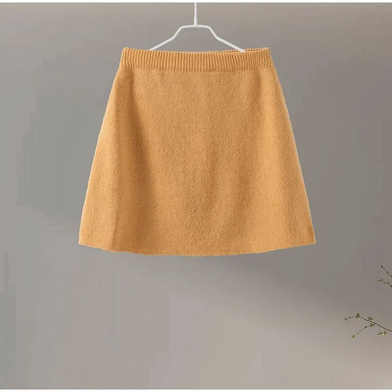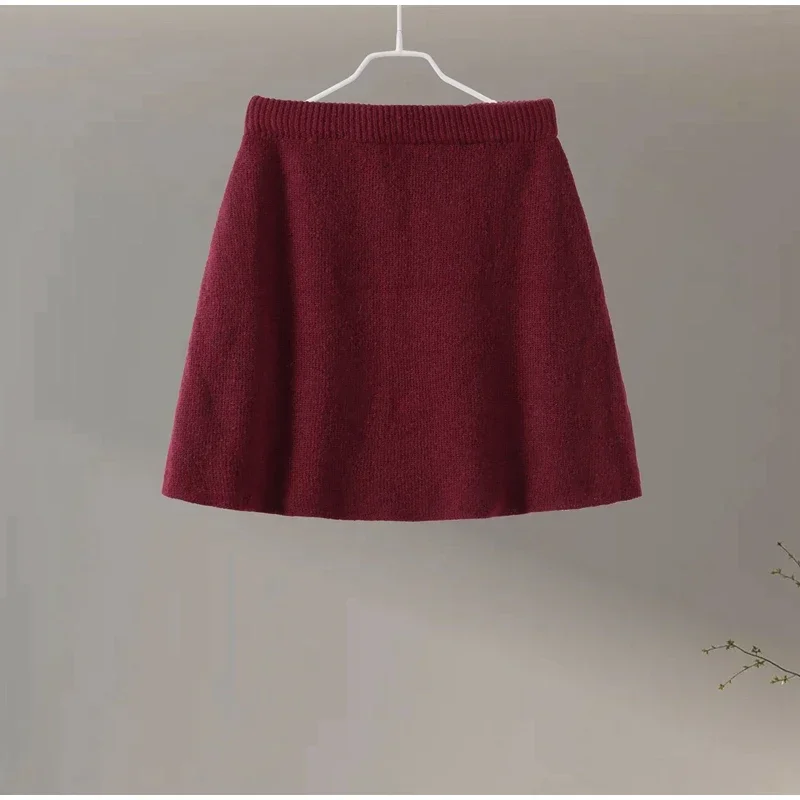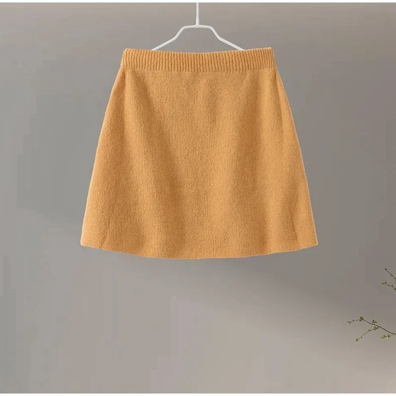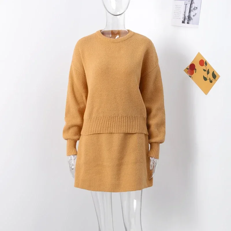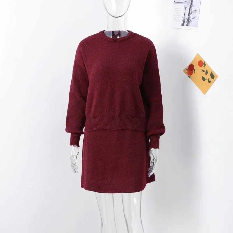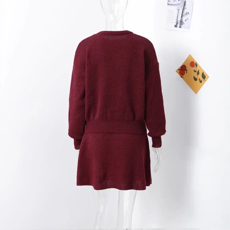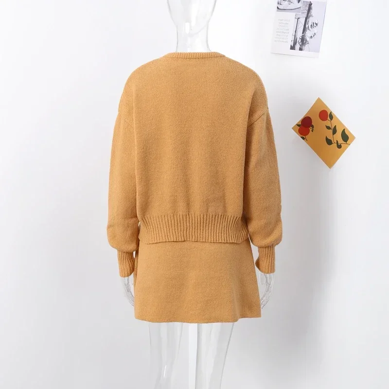 Elegant Women's Knitted Skirt Suit Set | O-Neck Pullover & High-Waist Short Skirt
