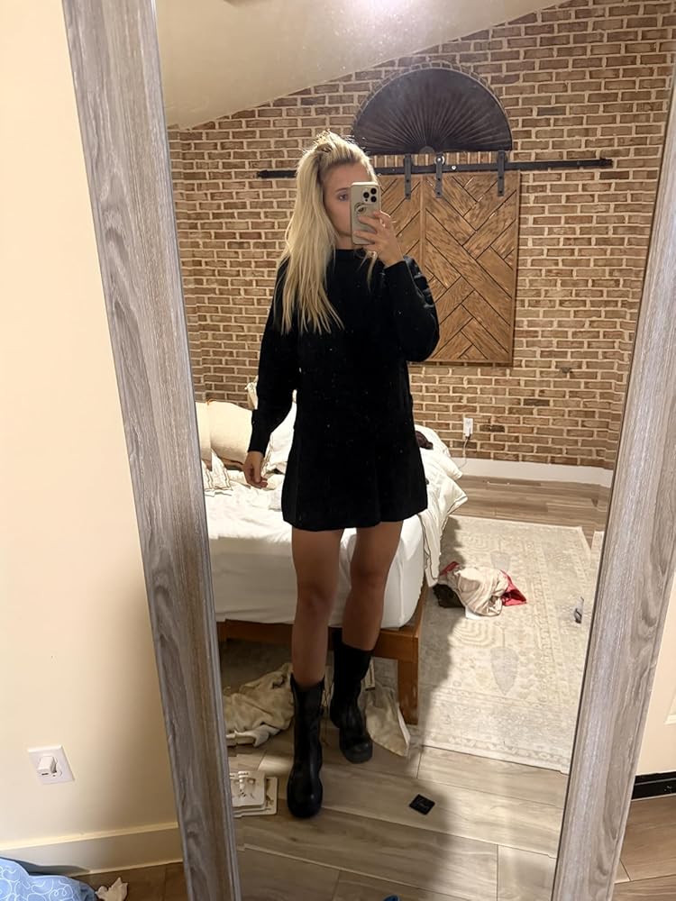 Everything I’ve ever wanted. I bought this with fleece lined sheer looking leggings and I couldn’t feel more beautiful. It looks just like the picture but might run a little small. I’m 5’2 and 130lbs and it’s small but skirt is perfect length for short but not too short, perfect mini! The sweater is smaller than advertised, so it doesn’t have so much of the oversized look as it does just look like your standard sweatshirt, but the material is still beautiful! If you want it to look like the picture I would size up. The waistband is tight but I like high waisted so I liked it! But I have a flat mid area, if you’re rocking any sort of pooch, I’d size up! STILL DEFINITELY GREAT PURCHASE!!! :)